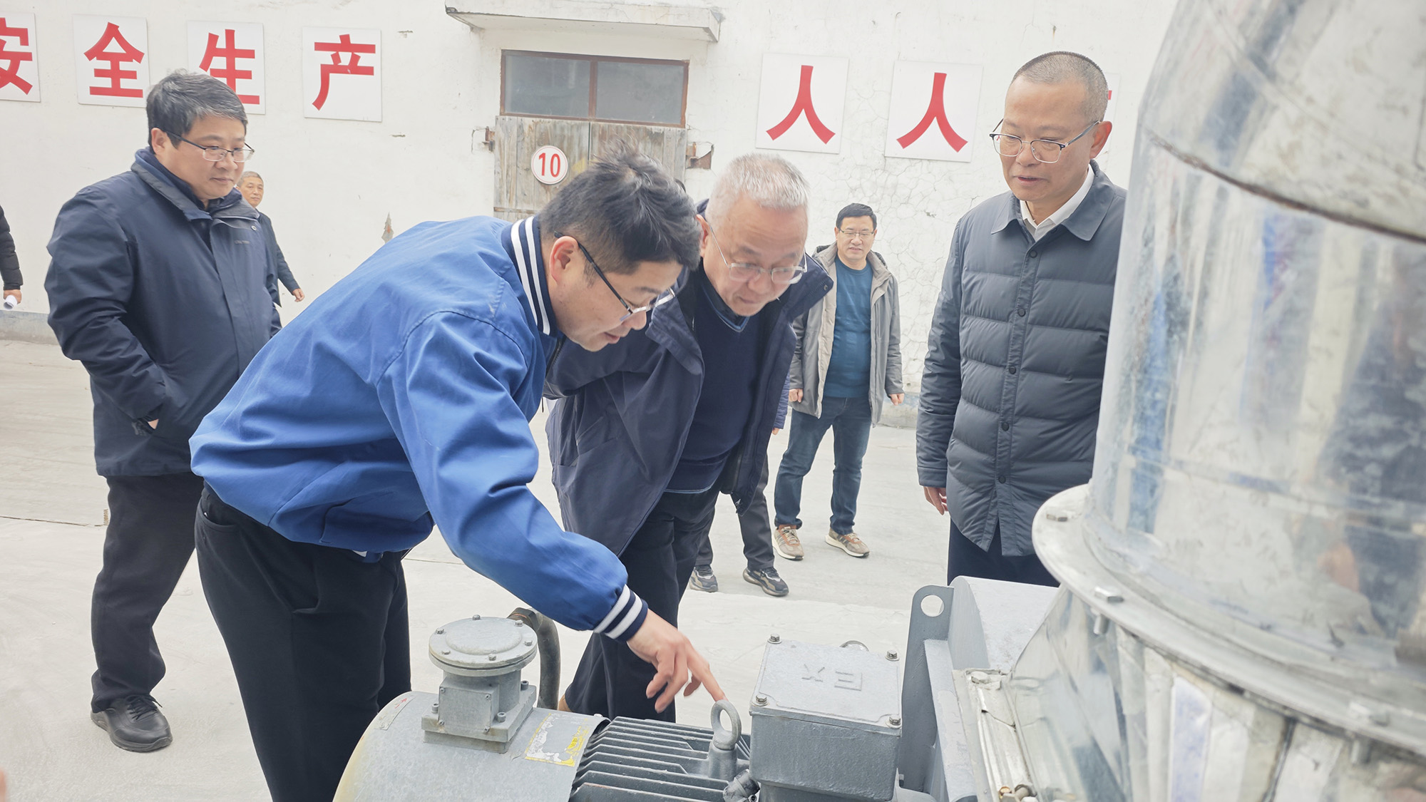 謝永明一行來到電容器分公司交流一線噴金工序外部專用收塵設施,認真了解裝置運行和安全報警系統(tǒng)、應急救援設施、靜電防護等安全設施運行維護情況,并聽取公司領導和有關負責人關于安全環(huán)保措施落實、隱患排查治理等情況的匯報。